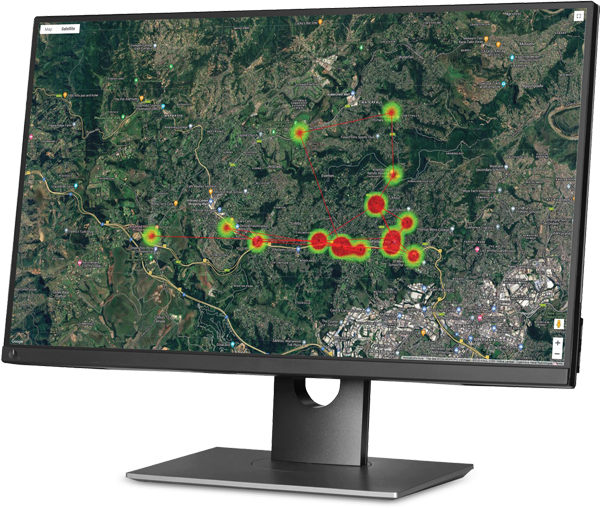• Map view showing possible location of the vehicle in 5, 10 and 15 minute travel bands.
